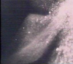 Fig. 6.1. Left: In 1972 a paddle or flipper, some 4 ft wide and 6 to 8 ft long, was captured on film at the same time as sonar echoes appeared to show two large objects in Loch Ness pursuing a shoal of fish. Right: An underwater photo taken in 1975, showing what appears to be the silhouette of a body with a long neck.