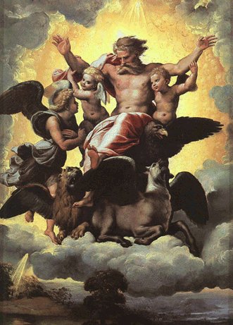 Fig. 10.2. Top: The vision of Ezekiel, as interpreted by Raphael (1518).