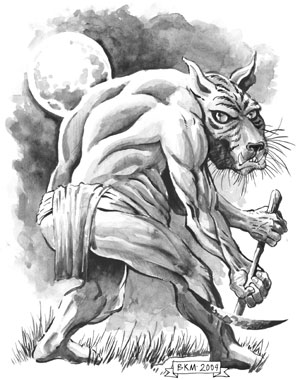 In Chinese mythology, chiang-shih (or jiangshi) are reanimated corpses that kill living creatures to absorb their life essence (qi or chi). They are said to steal the ‘breath’ of their victims; the idea that they suck blood seems to reflect the influence of western vampire stories. They hop around because of the pain and stiffness of being dead. Some look like normal humans while others have serrated teeth, long talons, and a green phosphorescent glow. They rip the head or limbs off their victims, and also attack and rape women. They are said to be created when a person’s lower soul (p’ai or p’o) fails to leave the deceased’s body, usually due to a particularly violent death or an improper burial. After a while they gain the ability to fly and possibly change into wolves.