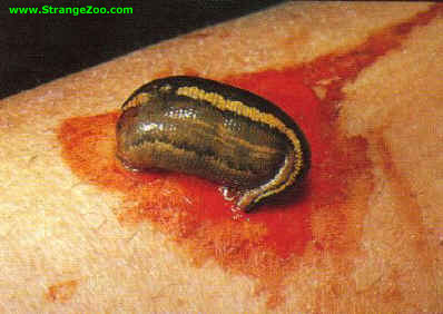 There are 14,000 species of blood-sucking insects, many of which attack humans and transmit diseases. They include mosquitoes, ticks, assassin bugs, fleas, lice, and bedbugs. There are several species of blood-sucking leech. They are able to store blood for slow digestion by secreting an antibiotic into their digestive system to prevent the growth of bacteria and retard putrefaction.